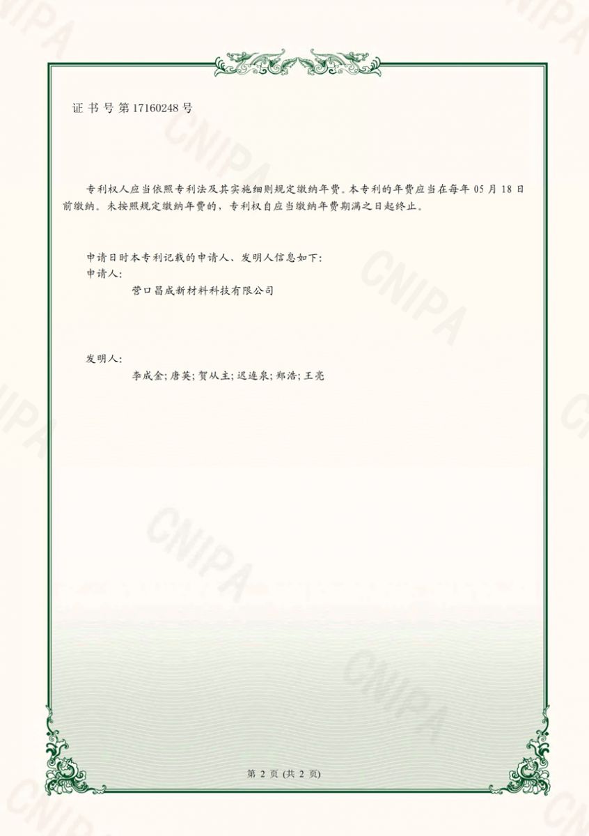 Copyright(C)2021,Yingkou Changcheng New Material Technology Co., Ltd. All Rights Reserved.